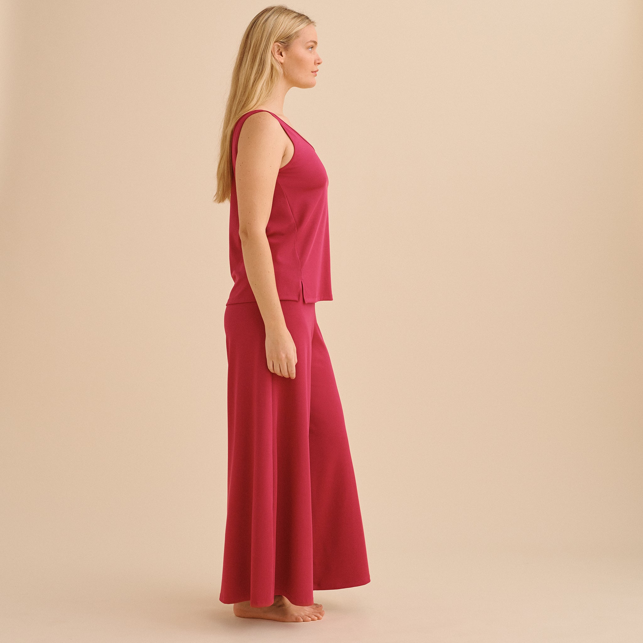These pjs are so cool and comfortable. They drape on the body beautifully. I got the midnight tank & wide legged bottoms & love. Will be living in them!