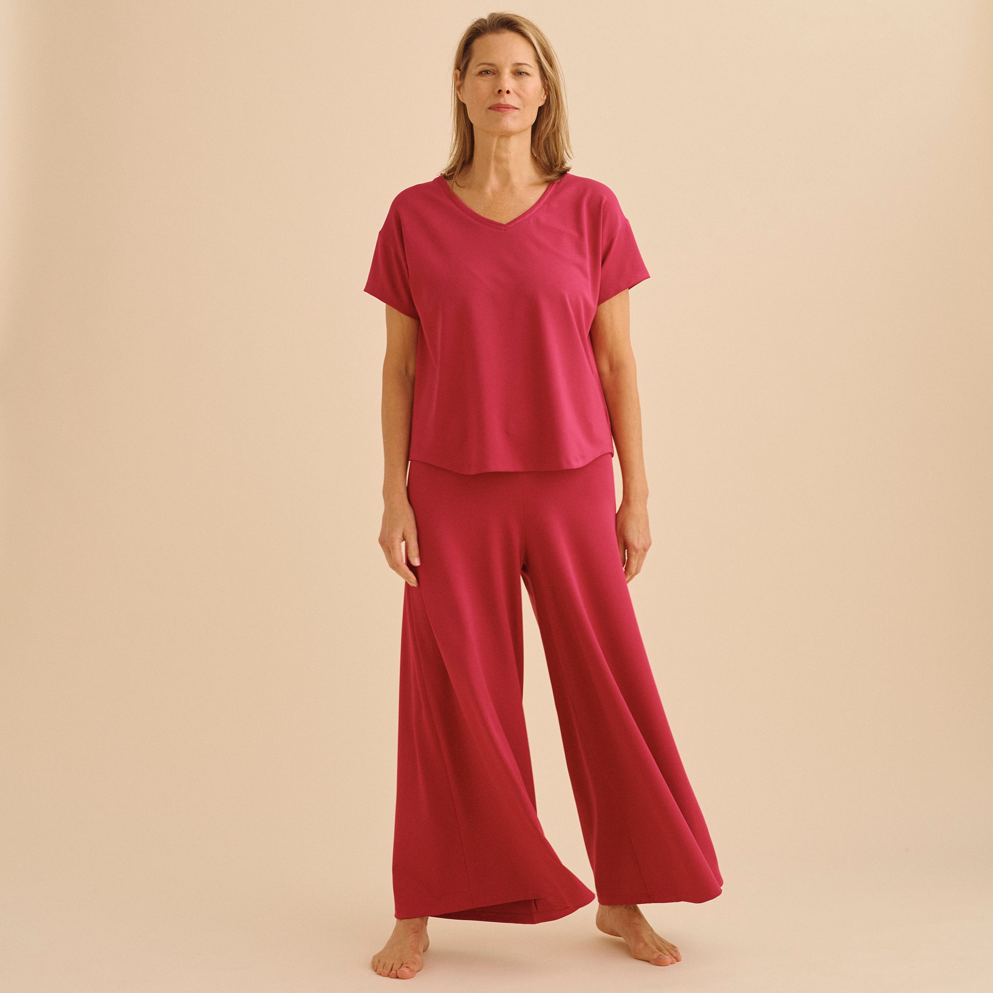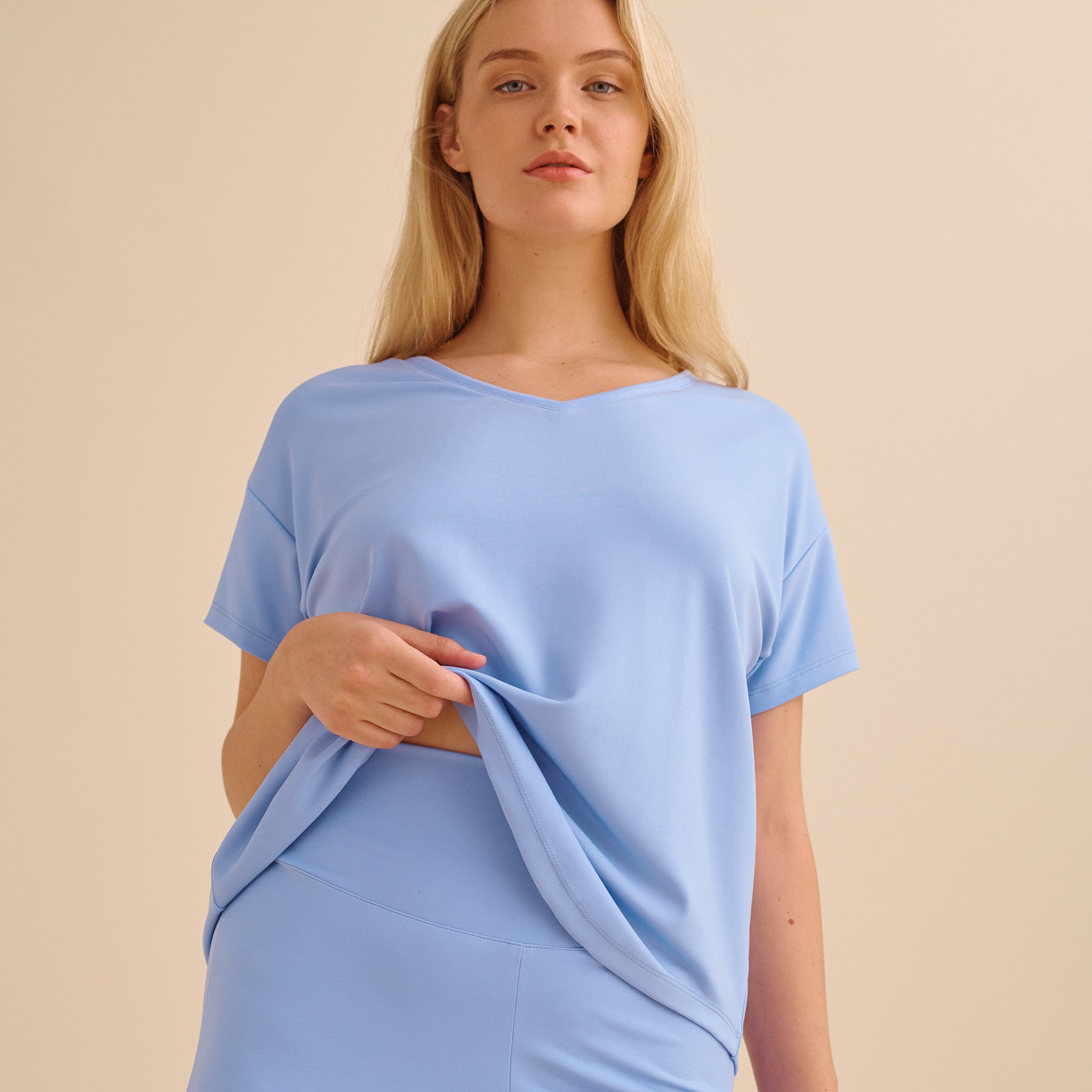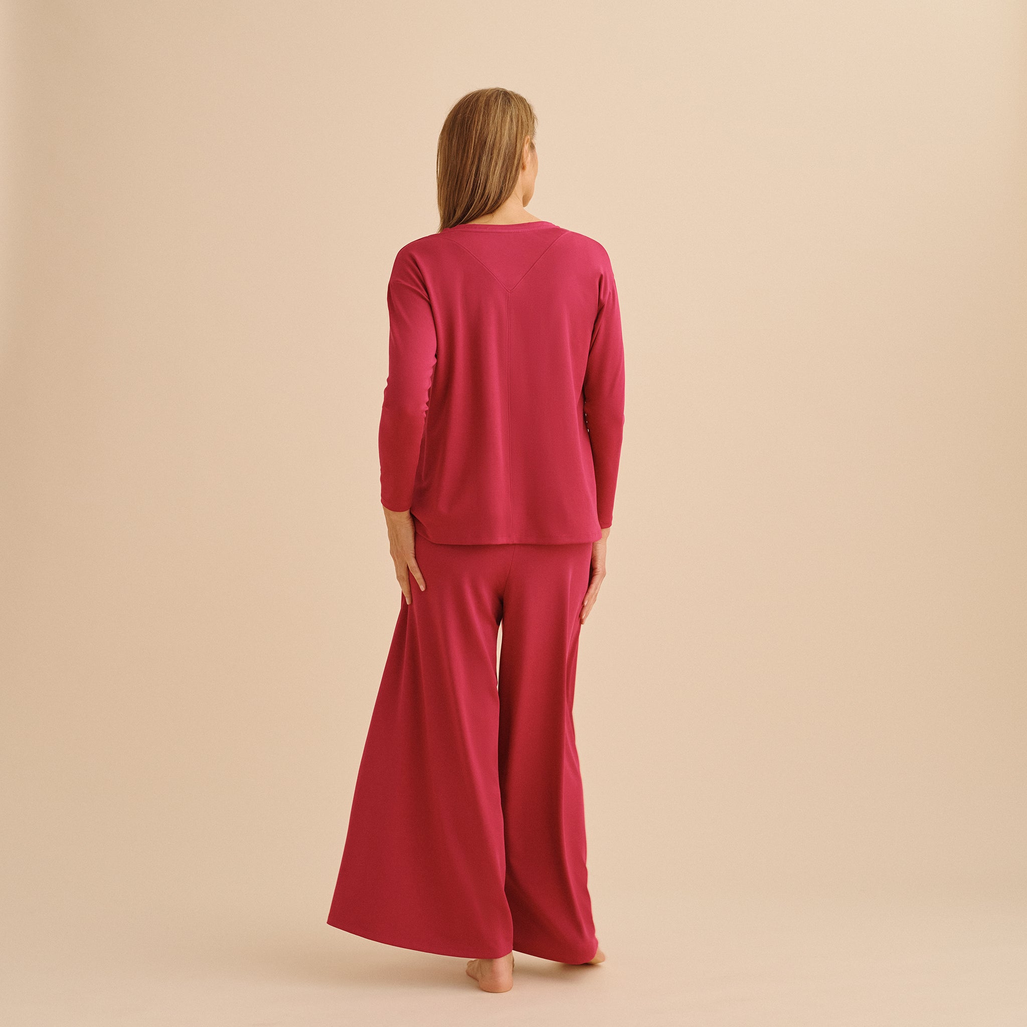 Our pioneering natural fabric has a luxe drape, indulgent feel, and airy light movement that has to be worn to be believed. They don't *look* like menopause pajamas or night sweat pajamas...and that's the beauty of it.