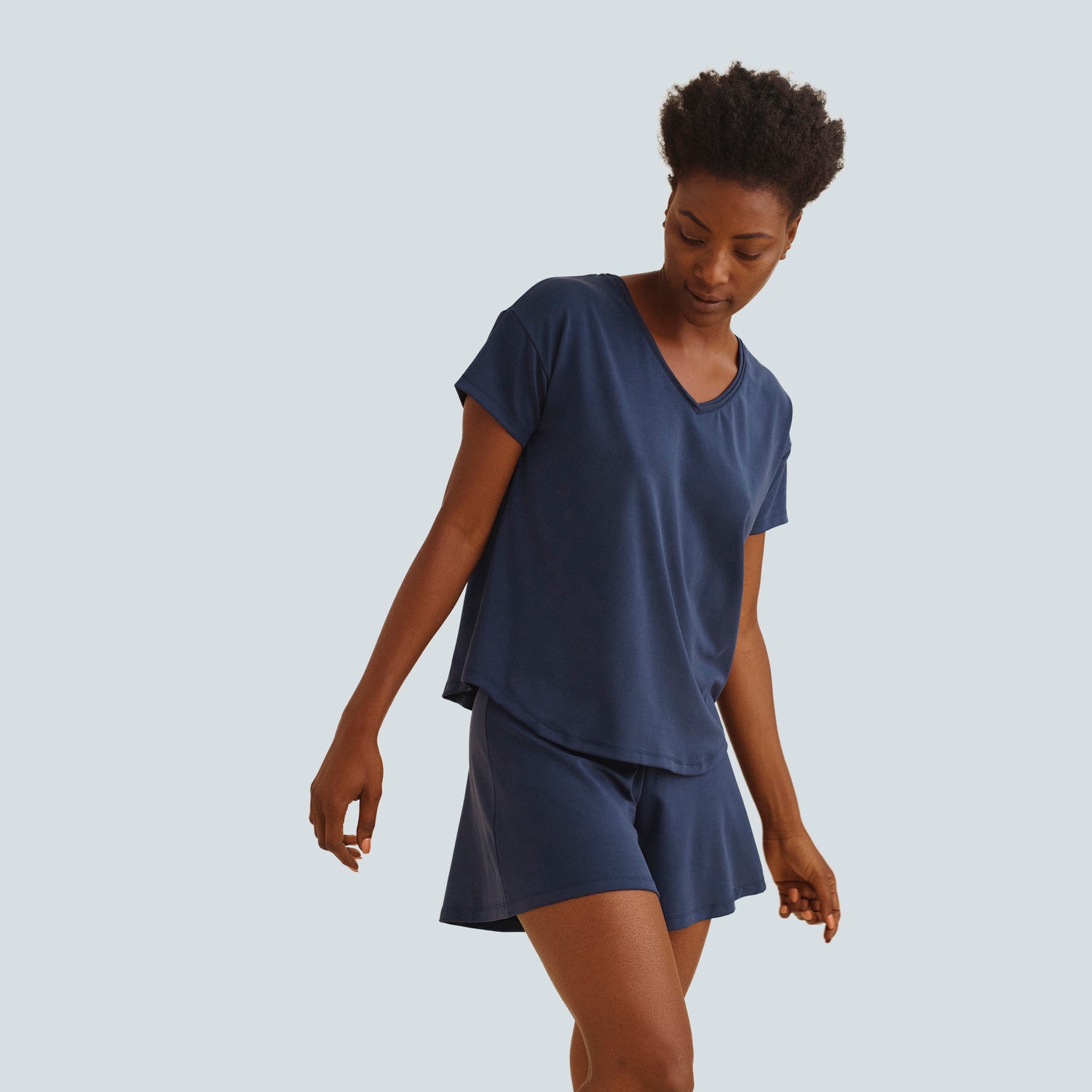 Breezy Short Sleeve Pajama Tee - The Woven V-Neck