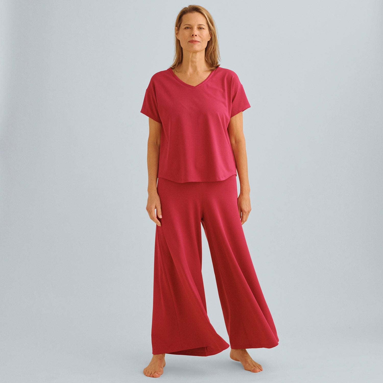 Our pioneering natural fabric has a luxe drape, indulgent feel, and airy light movement that has to be worn to be believed. They don't *look* like menopause pajamas or night sweat pajamas...and that's the beauty of it.