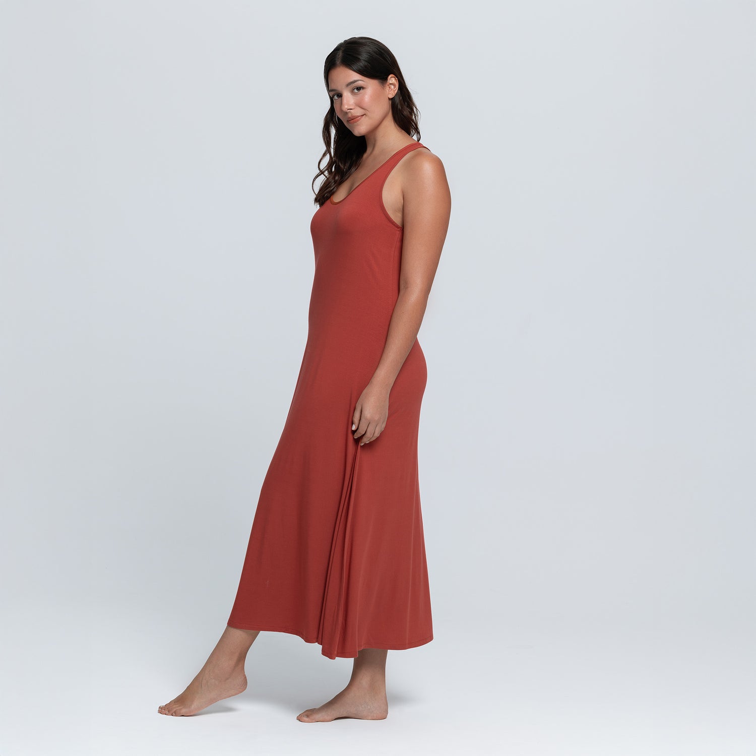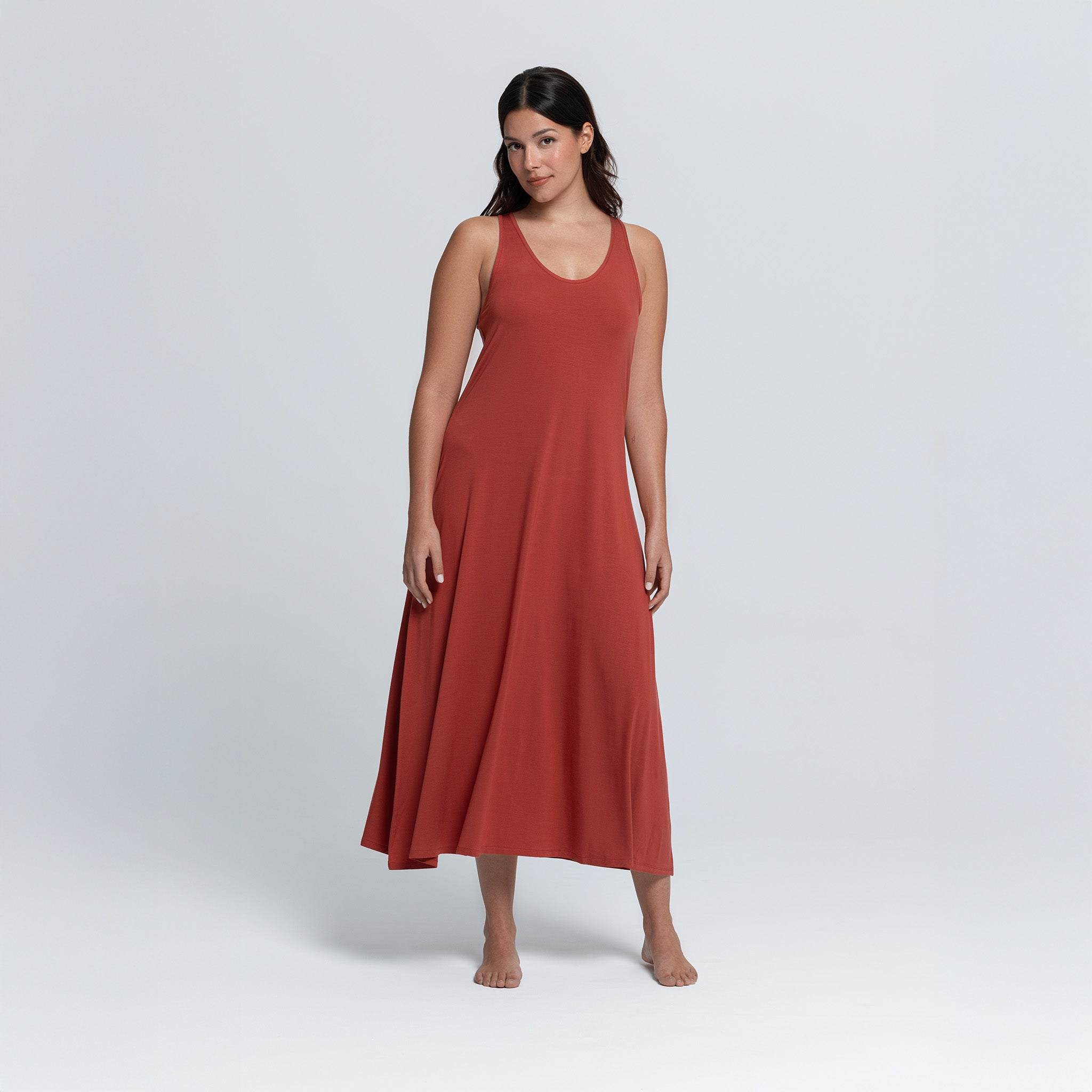 This is the long lounge and sleep dress you will live in. Sleek racerback straps stay beautifully in place (no more midnight adjusting), while the knit-tailored bust and romantic tea length showcase divine drape that flows like water, creating an absolutely perfect and flattering fit for every body.